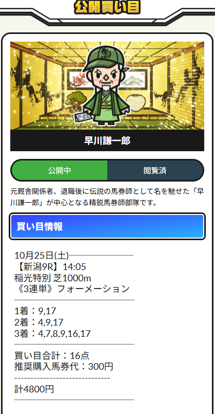 俺が口コミ1番乗り!先週の無料予想で万馬券的中&1点500円の馬券代で5万1750円ゲット! こういう的中が地味に嬉しいんだよな! コンスタントに無料予想当たってるな、今回もありがとうです!