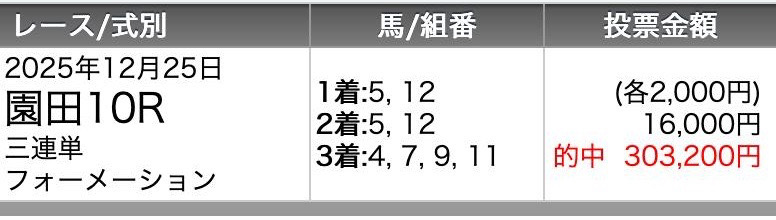 馬単は資金が足りず3連複のみでいきましたが最高の結果となりました😆