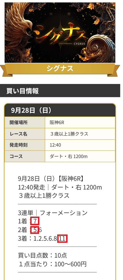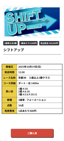 約束された万馬券の買い目が届く!