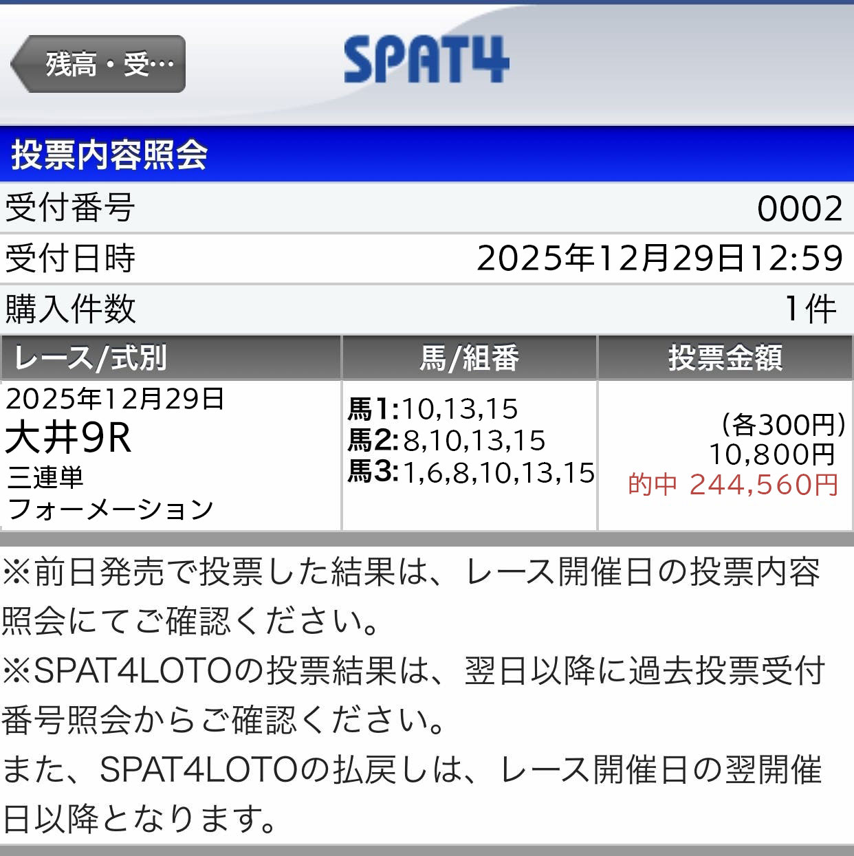 さすがの結果で衝撃をうけました。 3連単級の配当になるとはオッズを逆算して想定配当を事前に把握しているんだろうな。
