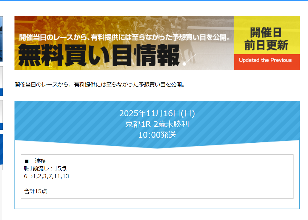 ※登録がない予想サイトなどがあればお問い合わせまでご連絡をお願いします。※