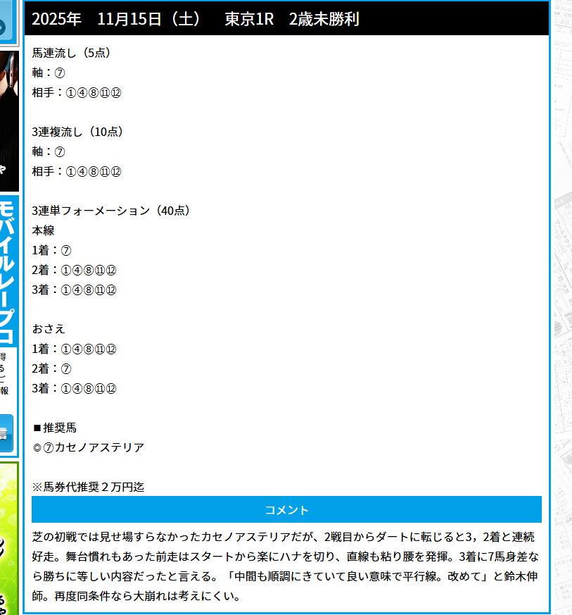 無料予想三連単当たりました!